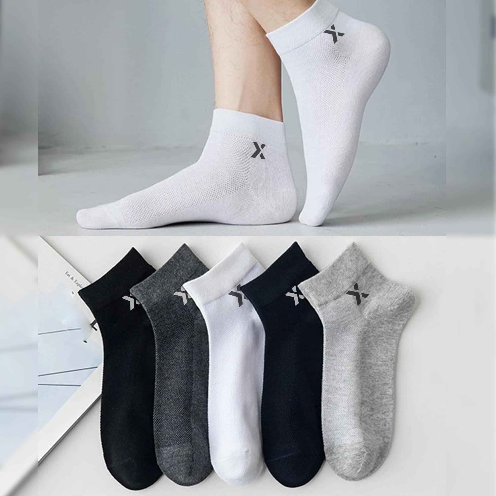 JEMOX BRIGHT Bamboo Ankle Length Socks for Men Pack of 5 | 5X Softer Than Cotton | Odour-Free Anti-Bacterial Breathable Fabric with Cushioned Sole | Ideal for Gym, Walking, Running, Work