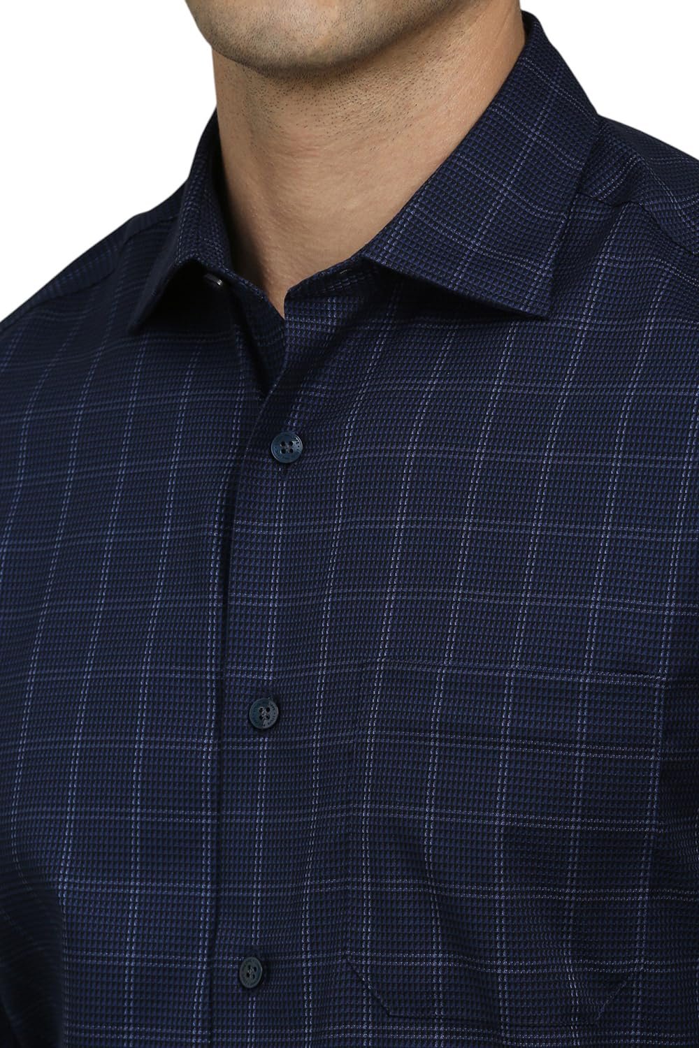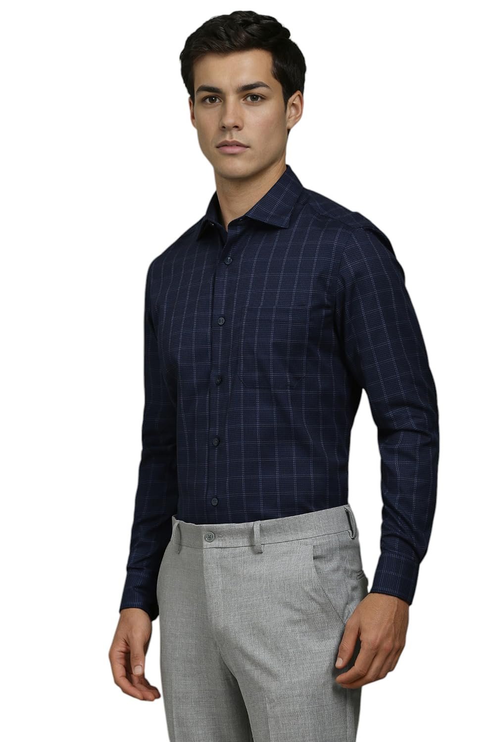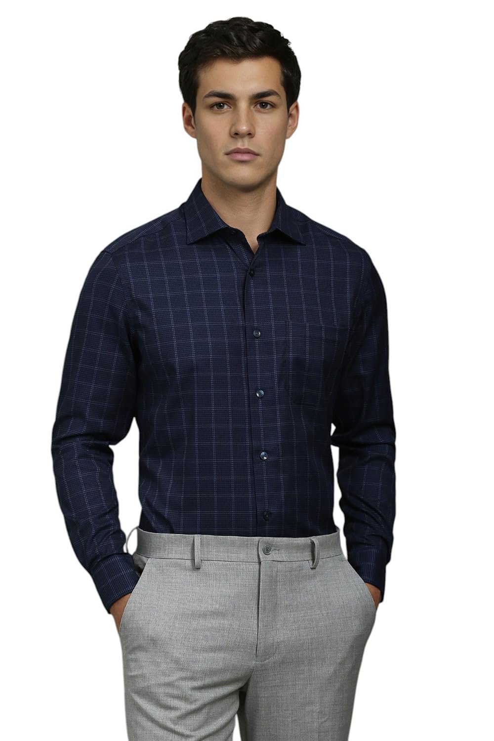 Showcase your refined sartorial taste in this Navy Check shirt from Louis Philippe at a Formal event. Tailored in Classic Fit , this shirt features a Regular Collar , Full Sleeves , and is crafted from exquisite 100% Cotton .