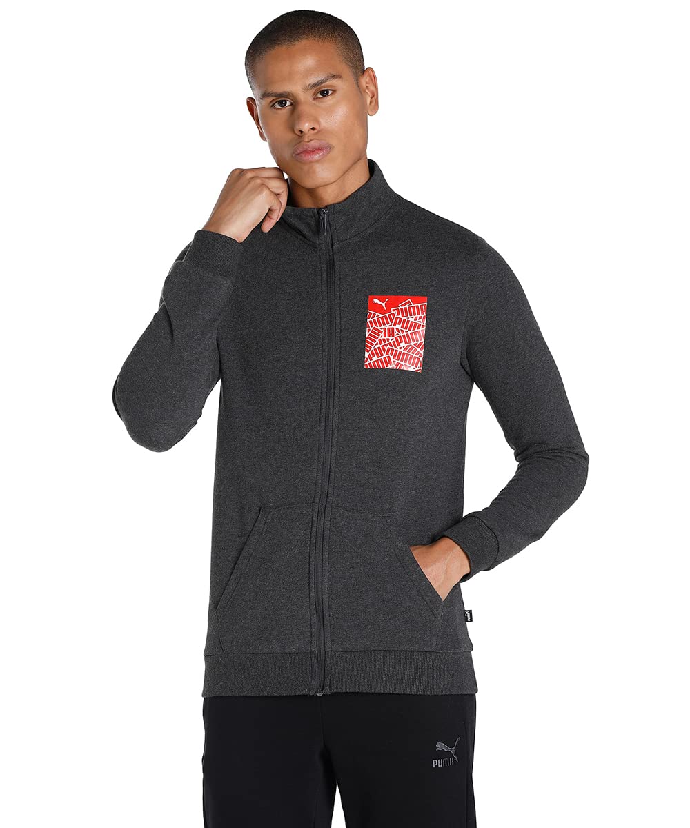 HomeMen's JacketsPuma Men’s Cotton Regular Hooded Neck A-Line Jacket (67532807_Dark Gray Heather, Large