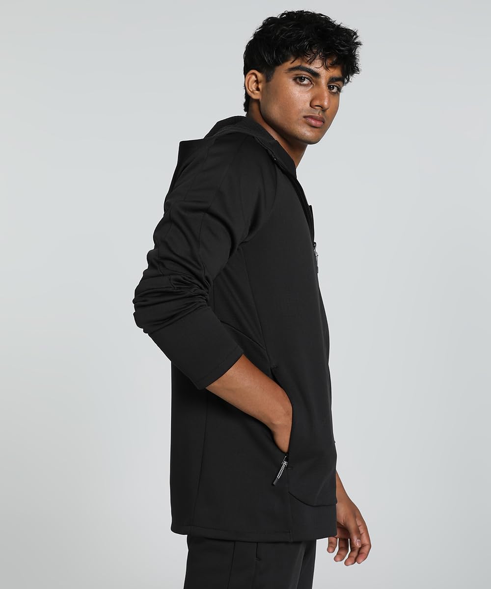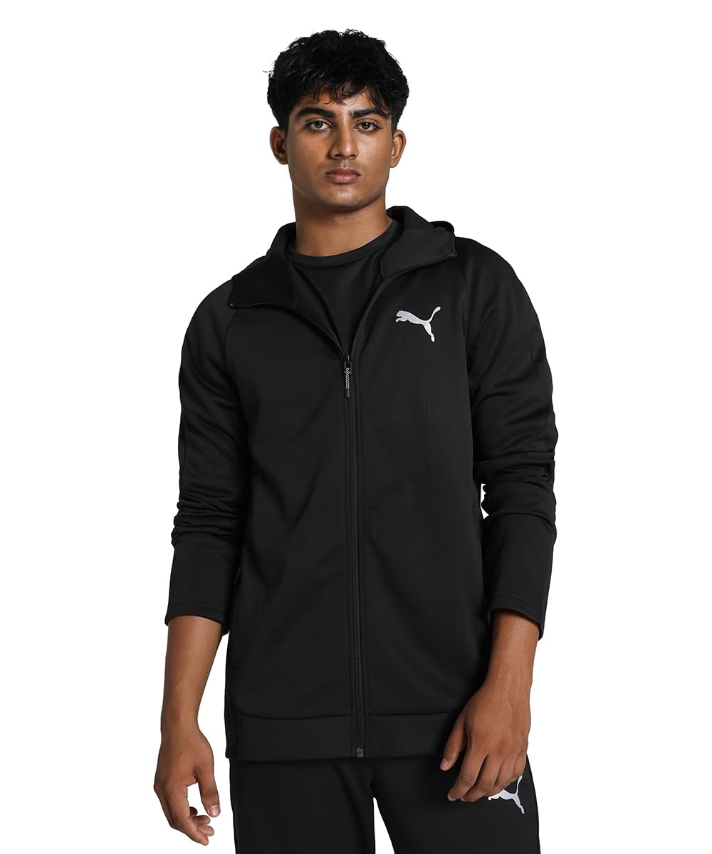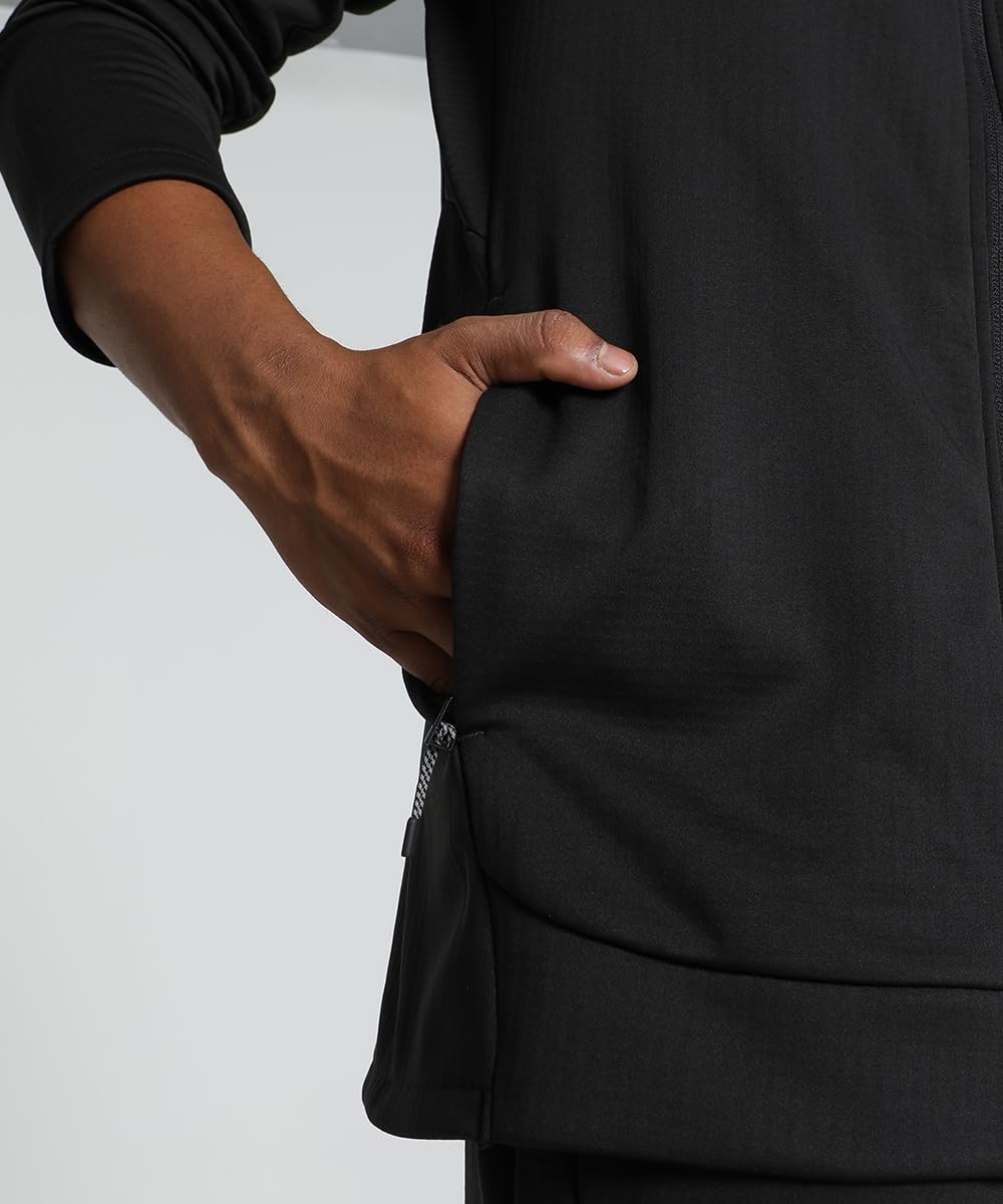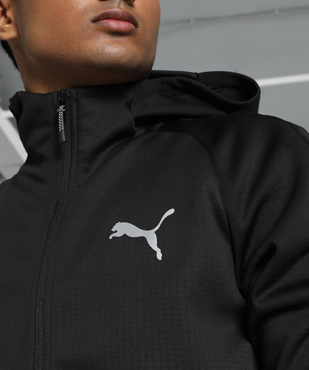 Product Story: Stay warm and look slick on the move in this full-zip hoodie. Designed for life’s everyday adventures, it features a durable yet breathable mid-weight fabric, spacious pockets to stash essentials and an adjustable hood for extra coverage when you need it. FEATURES & BENEFITS Made with 100% recycled material excluding trims & decorations warmCELL: Breathable cold weather technology designed to trap heat close to your body and keep you warm during exercise EVOSTRIPE: Cutline with articulation for improved flexibility and freedom of movementDETAILS Side zip pockets Full zip closure Long sleeve Forwarded side seams PUMA branding details
